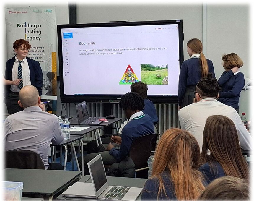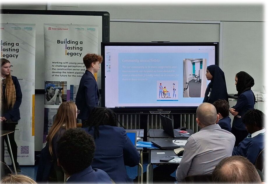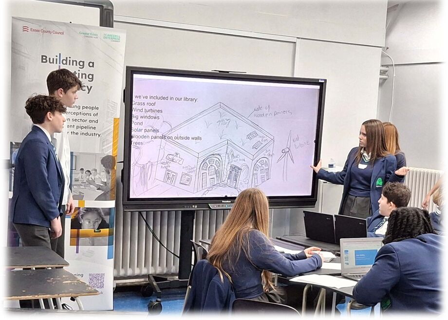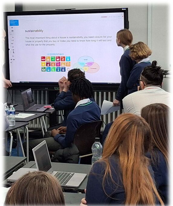 Each volunteer supported students with designing an Eco- Sustainable community building. The students worked within teams of 6. They worked together to decide on the type of the building, research the materials they would use and who would benefit from using the building. The teams then presented this to their peers and were judged and scored by the volunteers and the top 3 teams chosen. It was amazing to see every student engaged and working very hard to complete the project, they overcame their fears of presenting and we are very proud of them for showing the Hylands habits of resilience, respect and responsibility.